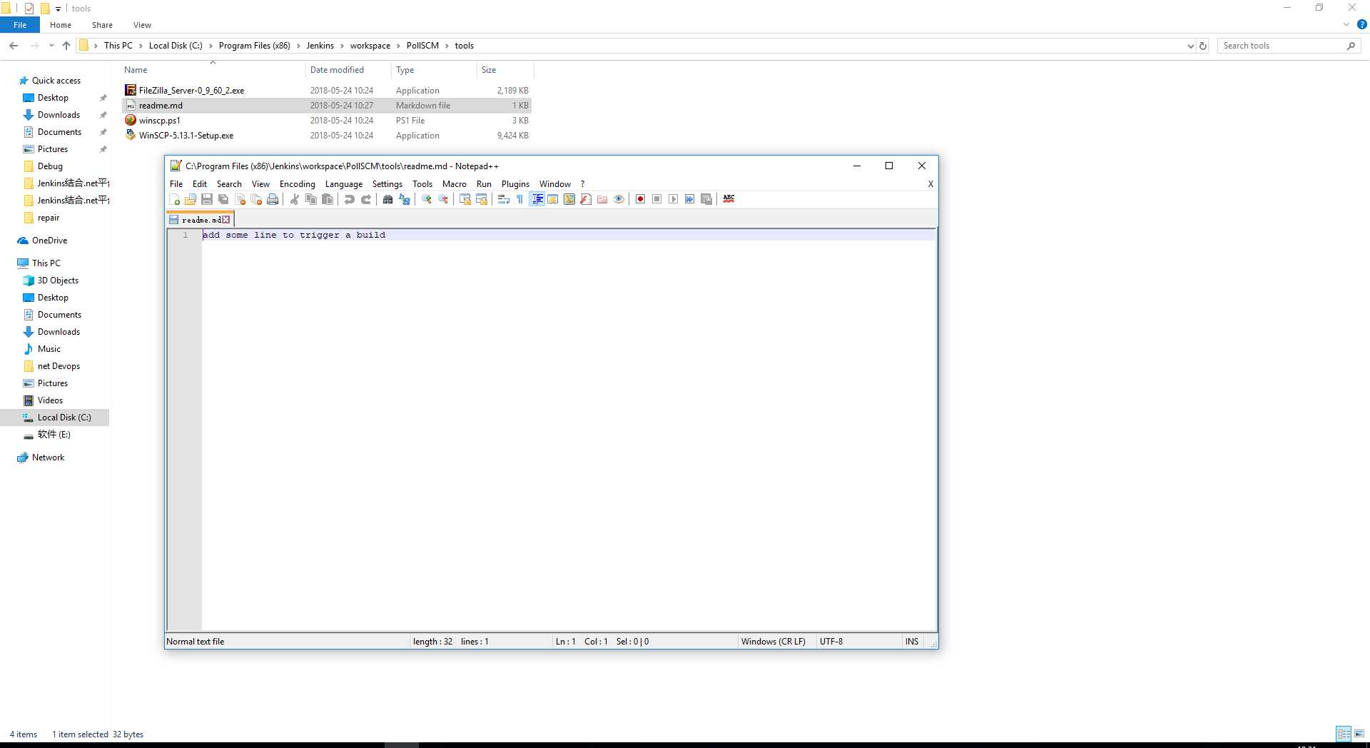 我们打开Jenkins目录下的workspace/pollscm/tools下的readme文件(这个文件原来是空的)