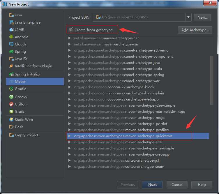 在创建Maven项目时加上 archetypeCatalog=internal 参数,如下: