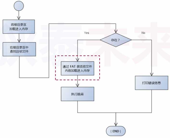 读取文件的内容时,我们需要根据FAT表找到存储文件内容的每一个扇区,然后进行内容的读取,在上一节中,我们将整个目录区的内容加载到了内存并根据文件名找到了所在的目录项,为了节省内存,我们将找到的目录项拷贝到另一片内存区域中,因为这个目录项中还有我们需要的内容,比如文件的起始扇区号等。而原来加载目录区的那一部分内存便可以另作他用,比如可以将FAT表加载到该区域。
