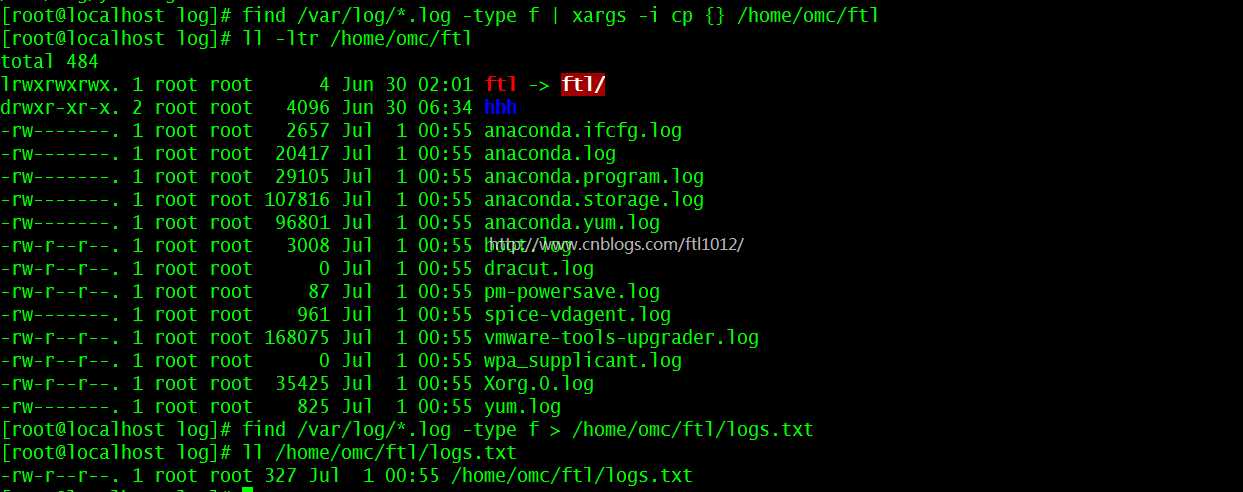 [root@localhost log]# find /var/log/*.log -type f | xargs -i cp {} /home/omc/ftl