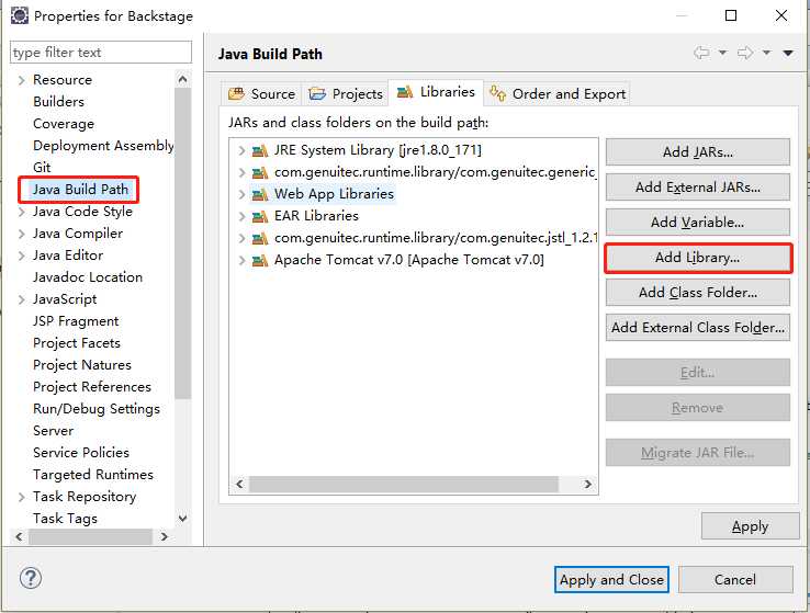 右击项目-> Properties -> Java Build Path -> Add Library -> Server Runtime -> next -> 选择你的Server -> Finish即可