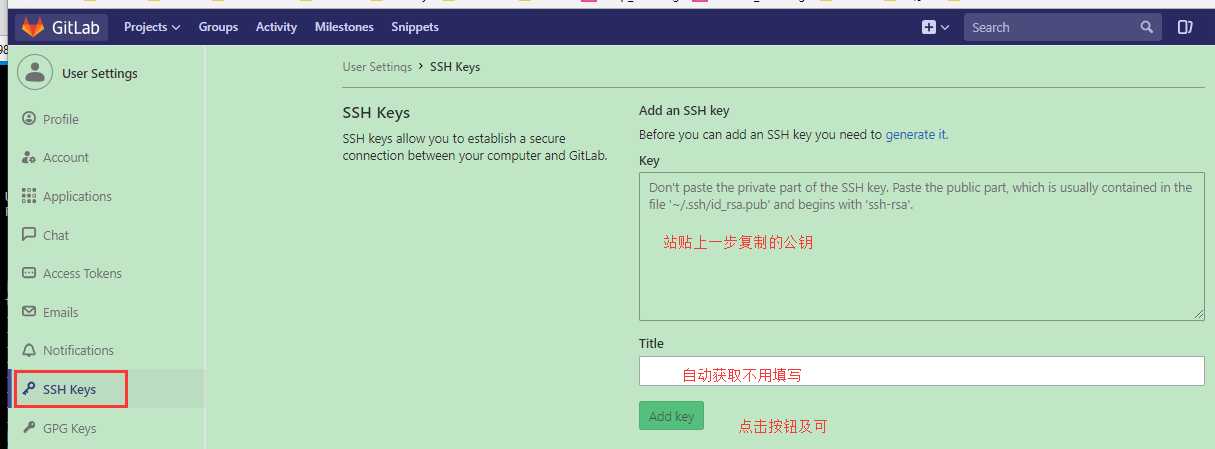 3.登录git仓库,创建ssh key