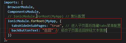 // IonicModule.forRoot(MyApp) // 默认配置