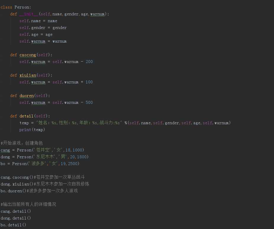 ps:类中的函数第一个参数必须是self(详细见:类的三大特性之封装)