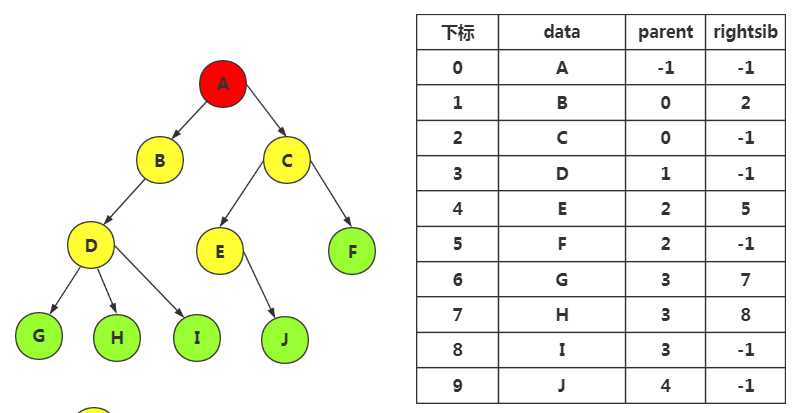 优点:parent指针域指向数组下标,所以找双亲结点的时间复杂度为O(1),向上一直找到根节点也快
