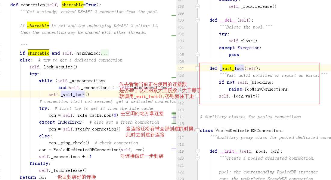 这时候conn.close()会把链接放到连接池,下次该线程如果还要用就去连接池去拿。看一下源码流程,因为maxshared永远为0,所以