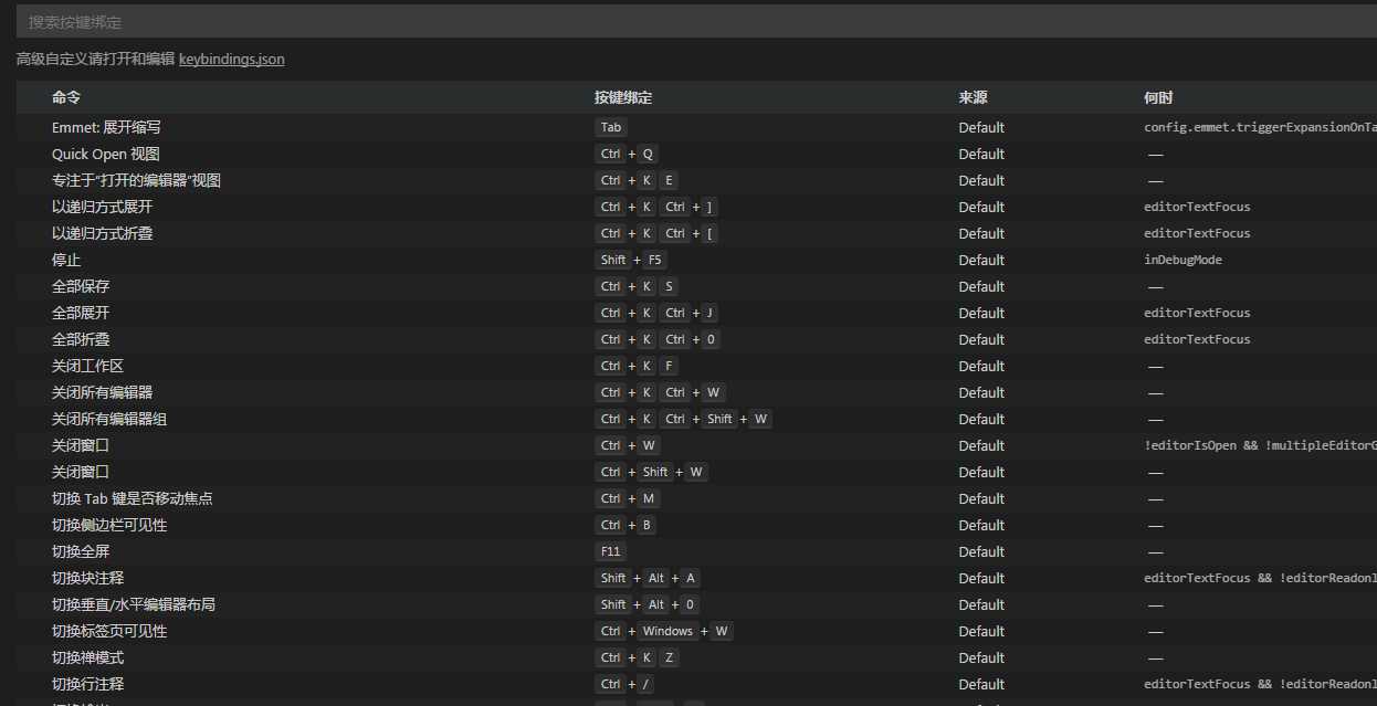 发现了按了Ctrl+K+S,打开了如下图这个界面: