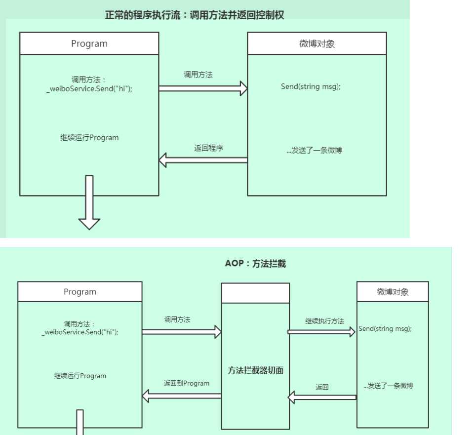 一种是编译时静态植入,优点是效率高,缺点是缺乏灵活性,.net下postsharp为代表者(好像是付费了。。)。