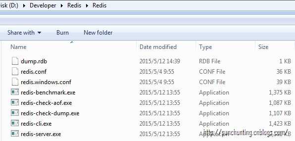 至此,我们已经得到所有需要的文件了,下面就可以使用了,打开 CMD, 定位到目录 D:\Developer\Redis\Redis,然后执行如下命令
