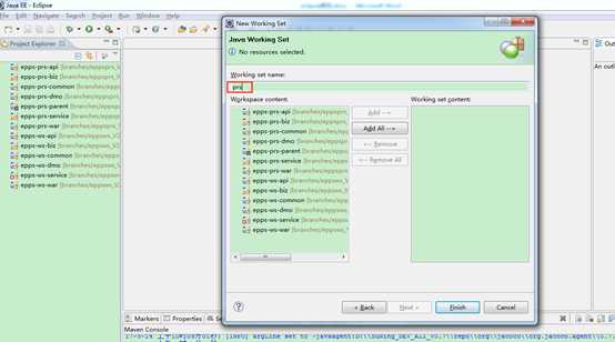 所有的系统代码都这么平铺开来,看着特别累,如果你的workspace里面有多个系统的代码,那面你们建立个set