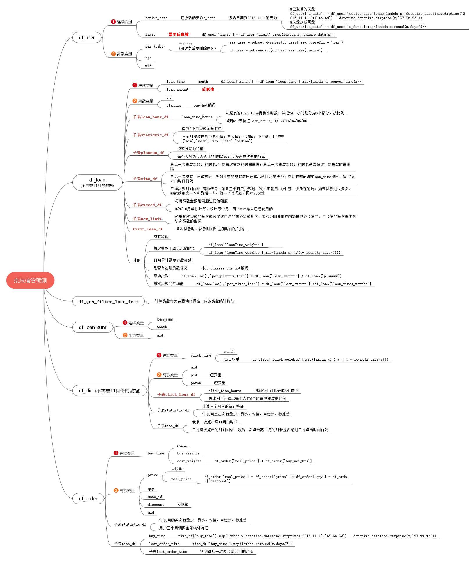 京东金融提供8到11月的用户借款信息,订单购买信息,页面点击信息以及用户个人和贷款的初始额度信息;要求预测12月每个用户的贷款信息。评价方式采用RMSE函数: