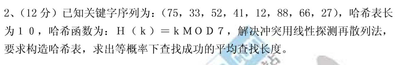 这是一道2009年武汉科技大学的考研题,但是按照要求却做不出来,因为对7取模最多只有7个空间,不可能放进8个数,所以怀疑这道题是不是出错了,但这是考研题,应该不会出错吧。所以各位大神,你们怎么看?