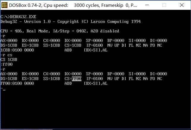 下载win.32位的DOSBox并配置Debug调试工具,打开DOSBox
