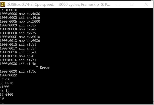 通过这次实验,我初步了解了如何在DOSBox下进行DEBUG调试,并基本熟悉了DEBUG中的各种指令