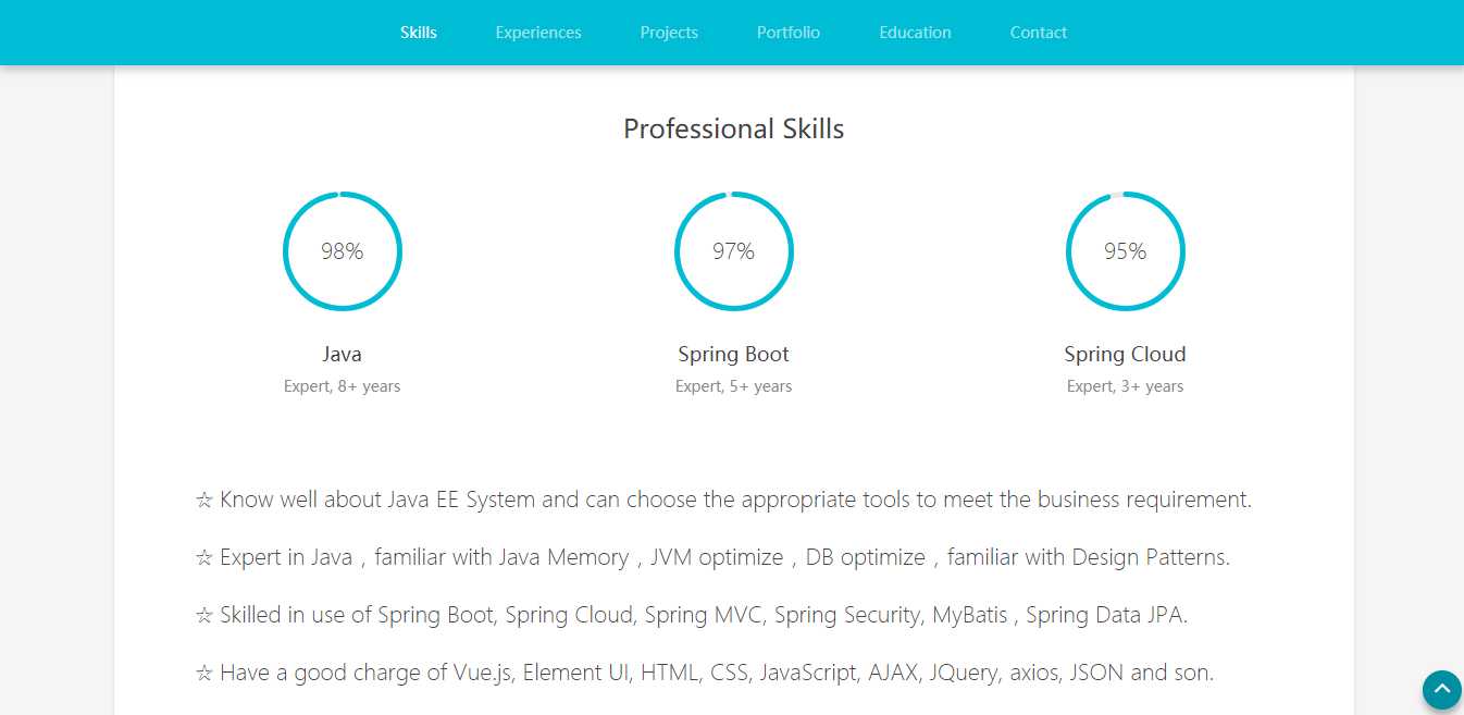 专业技能页面。