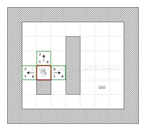 下图是猫在某一位置时的情景(绿色代表open列表):