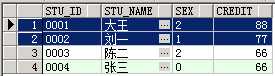 merge into student_temp t1 using (select stu_id, stu_name, sex, credit from student) t2 on (t1.stu_id = t2.stu_id and t2.stu_id = ‘0001‘) when matched then update set t1.credit = t2.credit;
