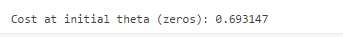 调用下面代码对于theta初始化为0,我们会看到结果 0.693。