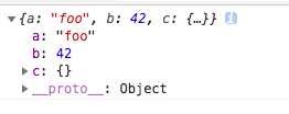 2,Object基本格式 <script type="text/javascript"> var a = ‘foo‘, b = 42, c = {}; var o = { a: a, b: b, c: c } console.log(o)