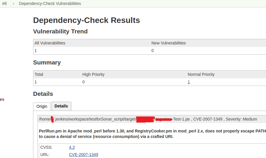 node { stage(‘Build‘) { echo ‘Building....‘ checkout([$class: ‘GitSCM‘, branches: [[name: ‘*/master‘]], doGenerateSubmoduleConfigurations: false, extensions: [], submoduleCfg: [], userRemoteConfigs: [[credentialsId: ‘global_credentials‘, url: ‘http://***/Test-myown.git‘]]]) sh "mvn -DskipTests clean install package sonar:sonar" def mvnHome = tool ‘M3‘ def gitDefault = tool ‘gitDefault‘ def jdkver = tool ‘jdk8‘ def mysonar = tool ‘SonarQube Scanner 6.7‘ echo "---${mvnHome}/bin/mvn---" echo "---${gitDefault}---" echo "---${jdkver}---" echo "---${mysonar}---" } stage(‘SonarQube analysis‘) { echo "starting codeAnalyze with SonarQube......" withSonarQubeEnv { sh ‘mvn -DskipTests clean install package org.sonarsource.scanner.maven:sonar-maven-plugin:3.2:sonar‘ } } stage(‘Quality Gate‘) { timeout(3) { def qg = waitForQualityGate() echo "---before qg:${qg.status}---" if (qg.status != ‘OK‘) { error "未通过Sonarqube的代码质量阈检查,请及时修改!failure: ${qg.status}" } echo "---after qg:${qg.status}---" } } stage(‘Dependency Check‘) { dependencyCheckAnalyzer datadir: ‘‘, hintsFile: ‘‘, includeCsvReports: false, includeHtmlReports: true, includeJsonReports: false, includeVulnReports: true, isAutoupdateDisabled: false, outdir: ‘‘, scanpath: ‘‘, skipOnScmChange: false, skipOnUpstreamChange: false, suppressionFile: ‘‘, zipExtensions: ‘‘ dependencyCheckPublisher canComputeNew: false, defaultEncoding: ‘‘, failedTotalHigh: ‘0‘, healthy: ‘‘, pattern: ‘‘, unHealthy: ‘‘ dependencyCheckUpdateOnly() // dependencyTrackPublisher()--shibai失败,youchucuo有出错tishi } }