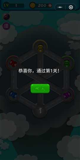 各颜色的车停到相应的位置后,显示过关页面,点击确定进行下一关的挑战。