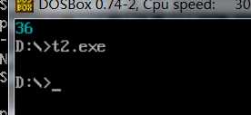 (1)对t2.asm 进行汇编,连接后,得到可执行文件 t2.exe, 运行t2.exe, 观察程序运行结果,验证是否在屏幕左上方出现红色的数值36
