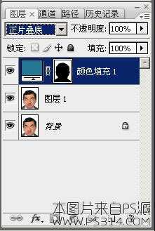 单击图层面板底部的 创建新的填充或调整图层 ,在弹出的菜单中选择 纯色。此时 Photoshop 会自动通过选区建立 纯色填充图层的蒙版。