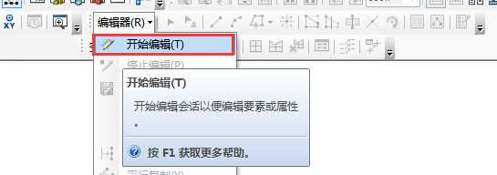 3 单击编辑器,选择‘开始编辑’,选中 ‘处理范围D’ 图层后确定