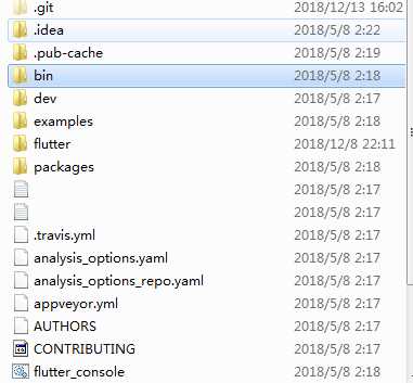 好了,我们来看看flutter目录结构,bin目录包含了flutter的执行程序,dev目录是一些工具和说明,大家学习主要通过example目录,packages目录是标准的dart包目录,也就是flutter