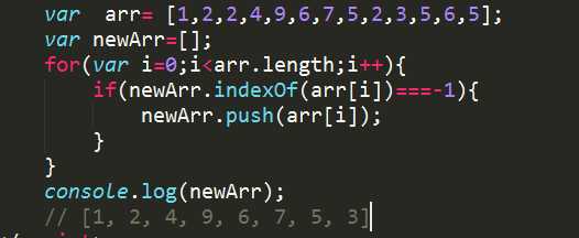 1:新建一个数组,遍历原来数组,判断遍历的值是否在新数组中存在,不存在就push