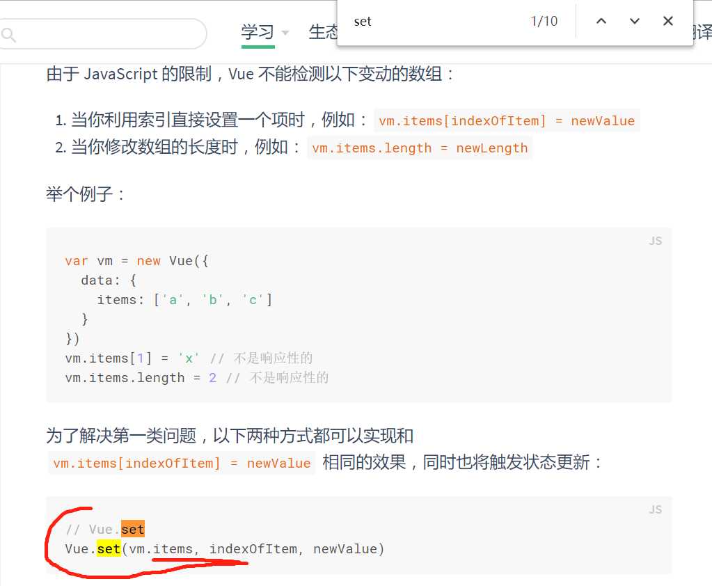 Vue.set(this.goods,1,‘fff‘)//用set方法 能够检测到到变化
