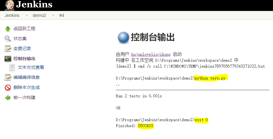 对应到目录即:%jenkins安装目录%/workspace/demo2/