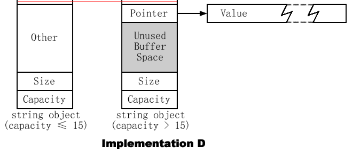 不同实现对于最小化字符缓冲区的配置器有不同策略。