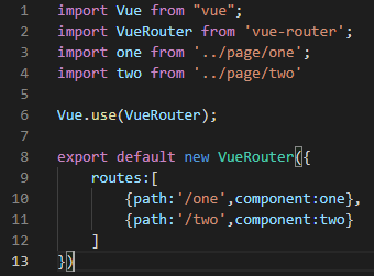 1,在src文件夹下新建router文件夹,在router文件夹下面新建router.js;在src文件夹下面新建page文件夹,在page文件夹下面新建one.vue和two.vue两个文件,并添加最简单的内容。
