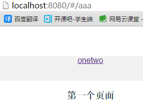 例如,在上面的例子中,我们为路由/noe添加一个别名/aaa,当我们在地址栏中输入http://localhost:8080/#/aaa的时候,地址保持/aaa的后缀不变,但是匹配的是路由/one所对应的页面。