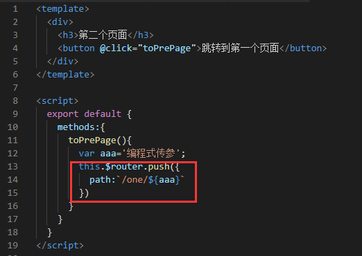 3,获取参数(当我们点击two.vue页面的按钮触发路由跳转后,就可以在one.vue页面获取到传递的参数)