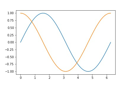 如:plt.plot(x,np.sin(x),x,np.cos(x))