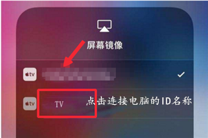 5、在AirPlay(屏幕镜像)界面找到电脑的ID名称,随后进行连接即可。