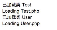 <?php //自定义的加载类 function myLoader($class_name) { require_once "libs/" . $class_name . ".php"; echo "已加载类 " . $class_name . "<br>"; } //将自定义的类名载入 spl_autoload_register(‘myLoader‘); new Test(); new User();