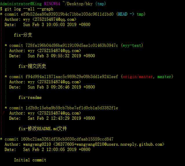 图形化查看所有分支提交历史的前四行简洁信息