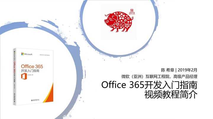 今天是春节假期的最后一天,在这里给全国的朋友们拜个晚年,祝大家身体健康,晚年幸福啊。这个春节大家过的怎么样啊,我自己是在老家过的年,家乡的年味还是比较浓的,也再次感谢朋友圈的大家给我看了各地的风光和不同的过年方式。在这个春节假期里呢,我还做了一件特殊的事情,就是准备了这套《Office 365开发入门指南》的视频教程。大家知道,2018年9月份我的这本书正式上市发行了,这是我的第一本书,自己觉得写的水平一般,还有很多可以改进的地方。承蒙大家抬爱,我今年很可能会出第二版。这一方面是因为Office 365本身在不断进化,书中有些内容需要更新,另外我自己在这一年左右时间又有不少进步,总是按捺不住想要分享给大家的。与此同时,有不少热心朋友也跟我反馈,希望有一套视频教程,便于在移动设备上面,利用碎片化时间进行学习,为此我利用这个假期先准备了这一套视频教程,并且将以此为蓝本筹划书籍的第二版。