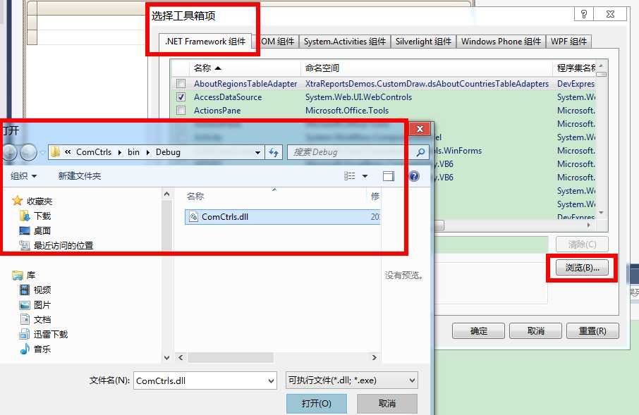 原因3:需要手动添加进工具箱。我的问题也是在这里。在工具箱中,右键点击,选择项,.NET Framework 组件分页(第一次加载会有些慢,耐心等一会儿),这时候,里边是找不到我们的控件的,需要点击浏览,找到dll,添加进去,点击确定即可。