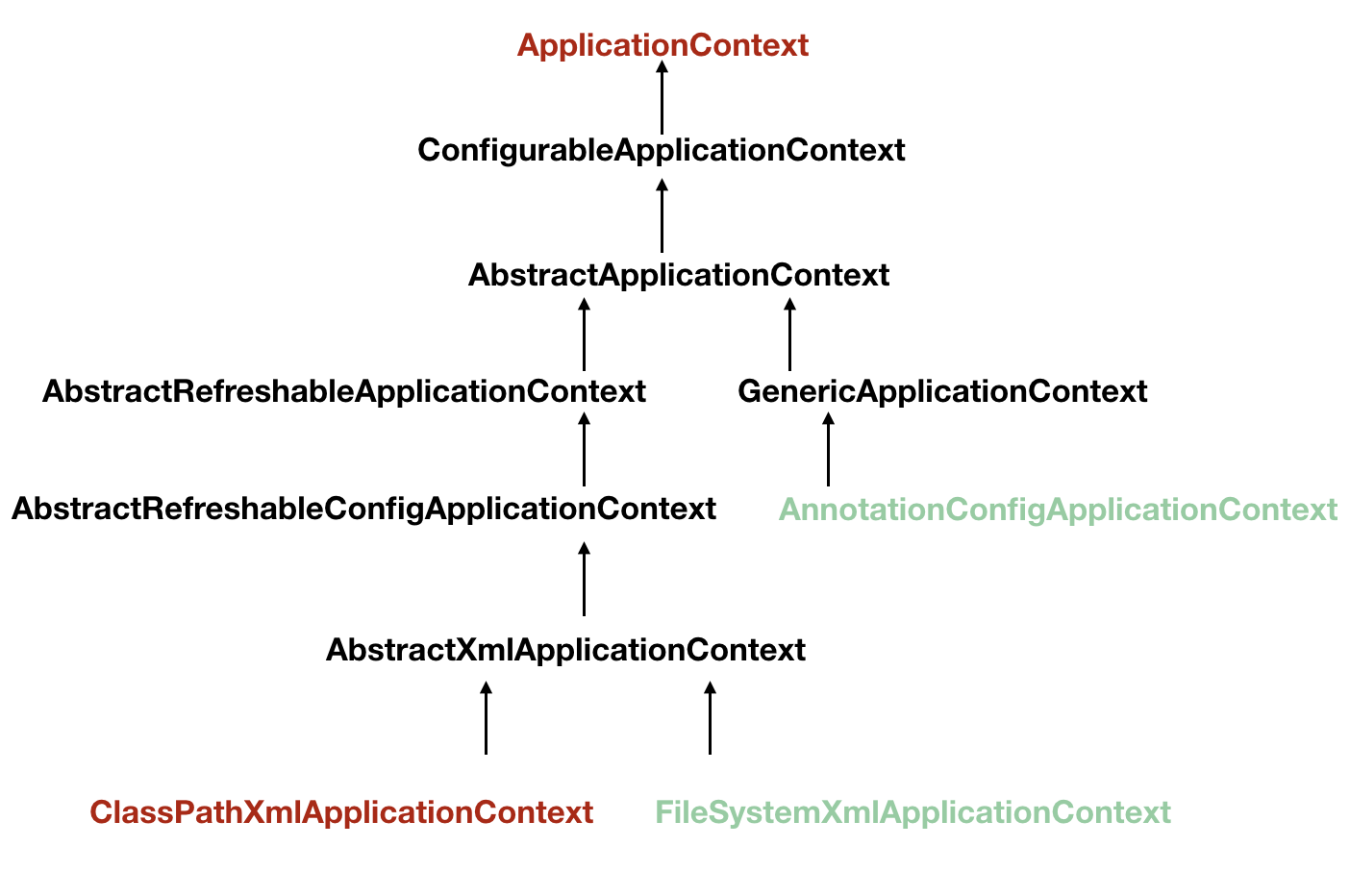 我们可以看到,ClassPathXmlApplicationContext 兜兜转转了好久才到 ApplicationContext 接口,同样的,我们也可以使用绿颜色的 FileSystemXmlApplicationContext 和 AnnotationConfigApplicationContext 这两个类。