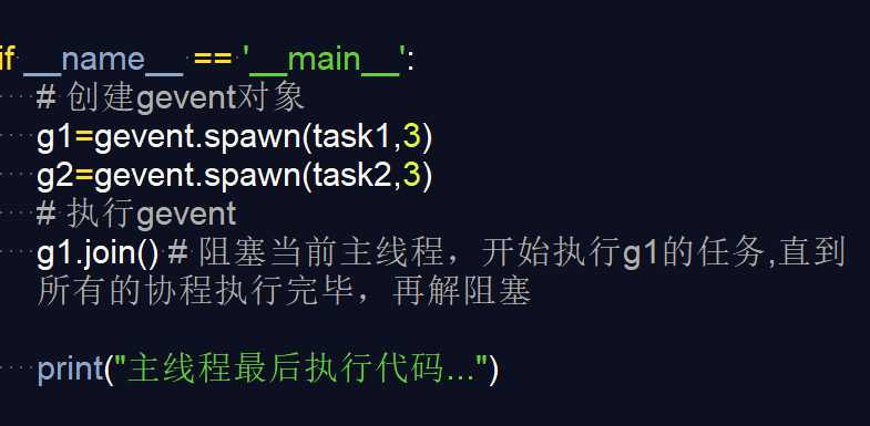 g1 = gevent.spawn(task) 创建gevent对象,task是任务函数名