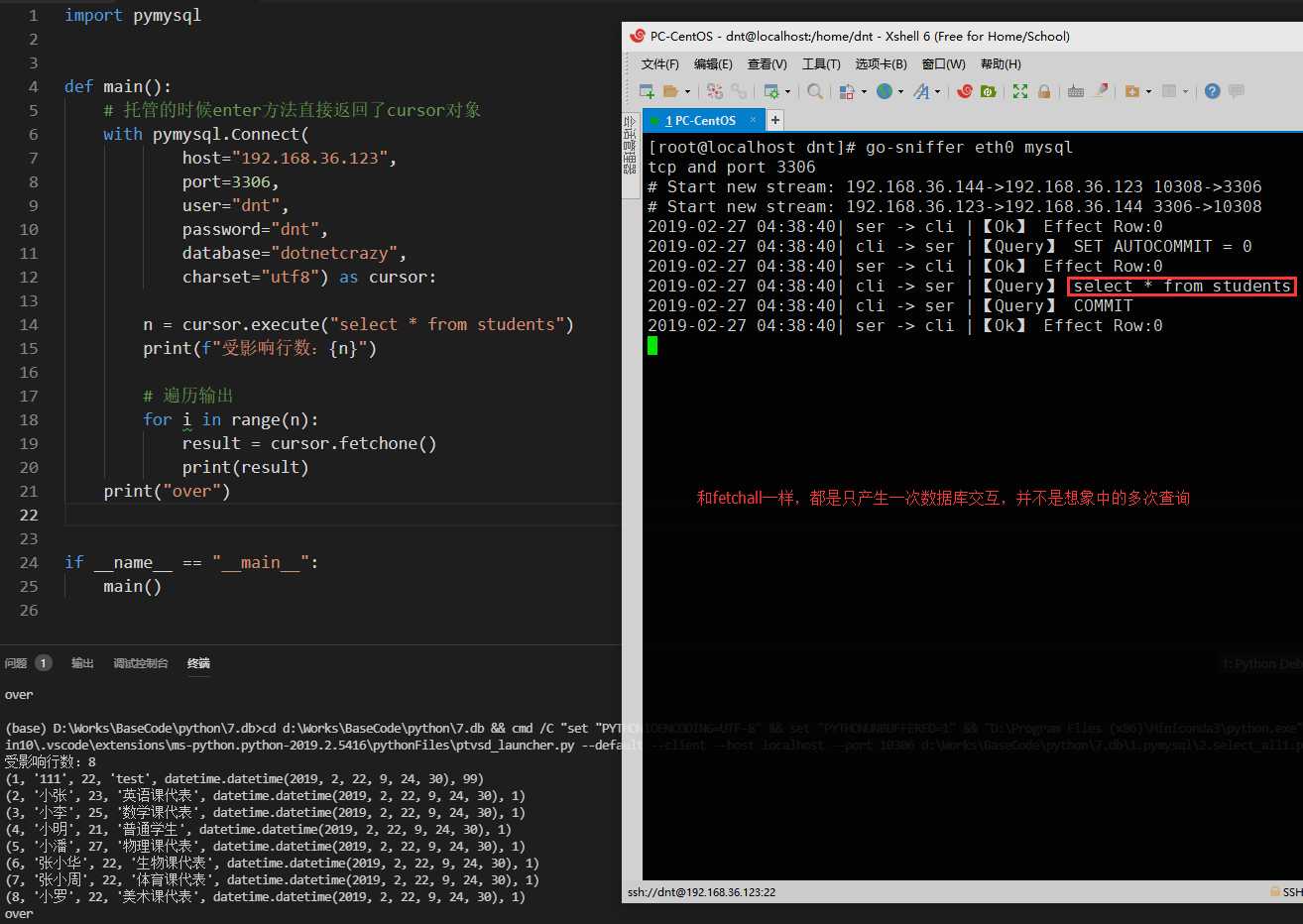 我是在MariaDB服务器端监控的:go-sniffer eth0 mysql(需要root权限,本地就用lo)