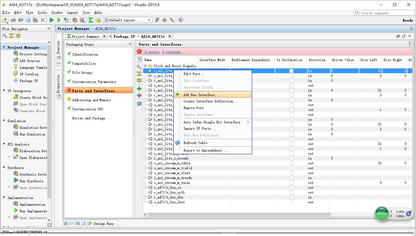 配置IP的端口,由于IP自动添加的总线端口一般都有问题,所有在配置前,需要将自动添加的总线端口去掉,然后再配置端口。