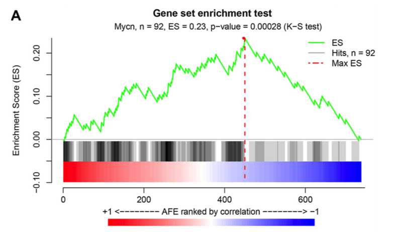 最后,针对一个例子,mycn。将其筛选出来的标准为 P-value=0.00028
