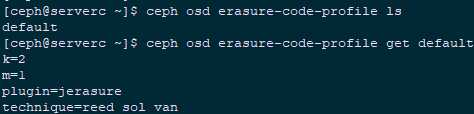 2 [ceph@serverc ~]$ ceph osd erasure-code-profile get default #查看默认配置文件相关参数