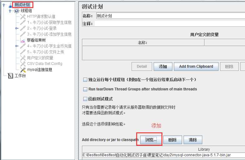 2、 需要添加“mysql-connector-java-5.1.7-bin.jar”